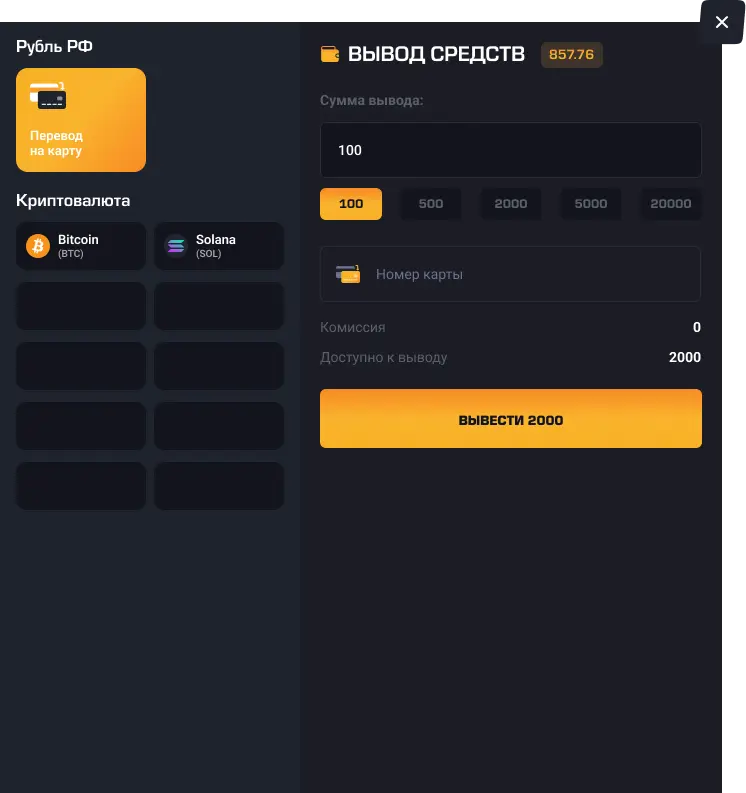 Для пополнения баланса откройте раздел “Кошелек” и выберите пункт “Пополнение”. Далее, выберите желаемый способ оплаты и нажмите “Пополнить”.